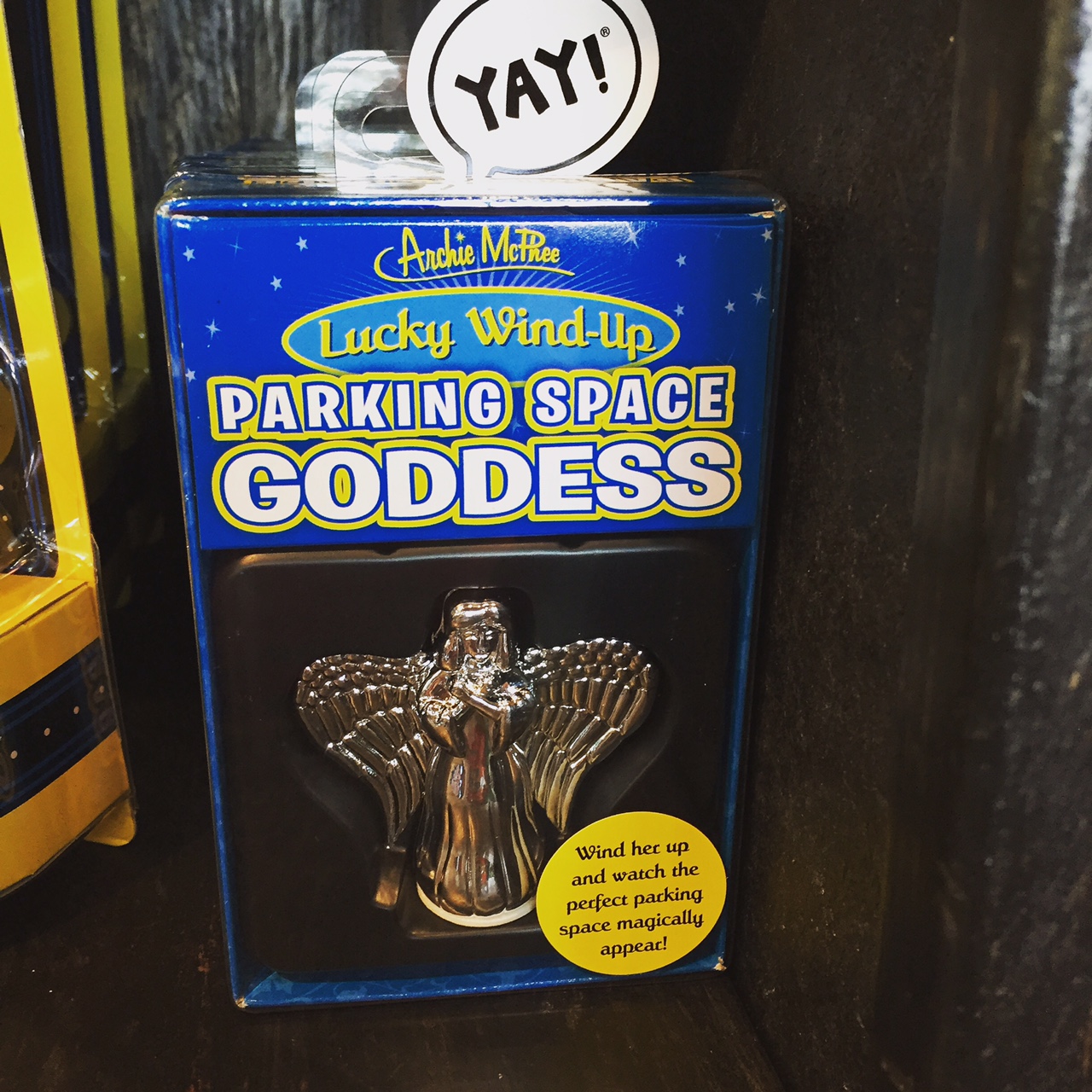 (Disclaimer: You must be in heaven's favor in order to effectively use the parking space goddess. Independent studies may not be statistically significant as the test population falls below (far) the significant threshold. Do not wind Parking Goddess while driving.)
