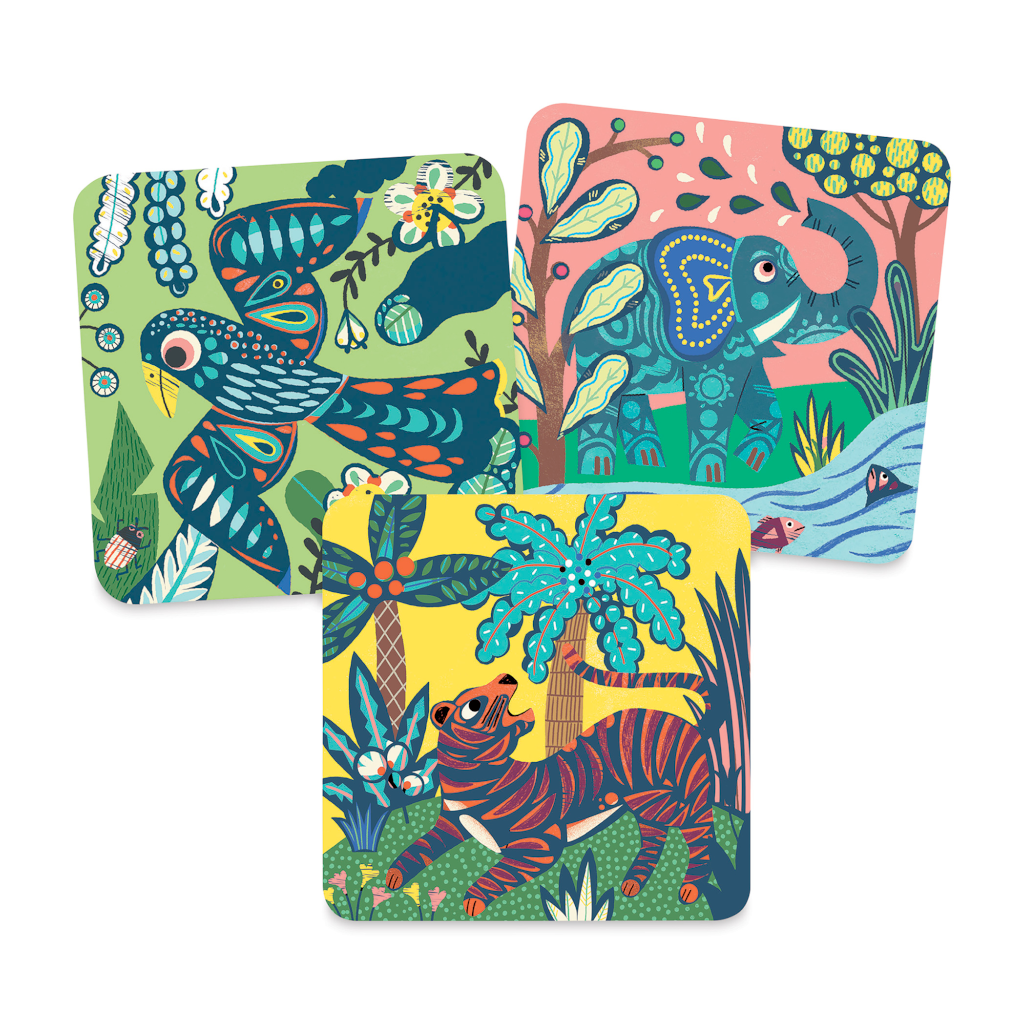 Scratch away the blue covering to make unique patterns and reveal big animals underneath! Kids will love using their creativity to make these scratchboards their own. The kit includes 4 scratchboard, each with a unique animal. There is a tiger, a giraffe, a bird, and an elephant.