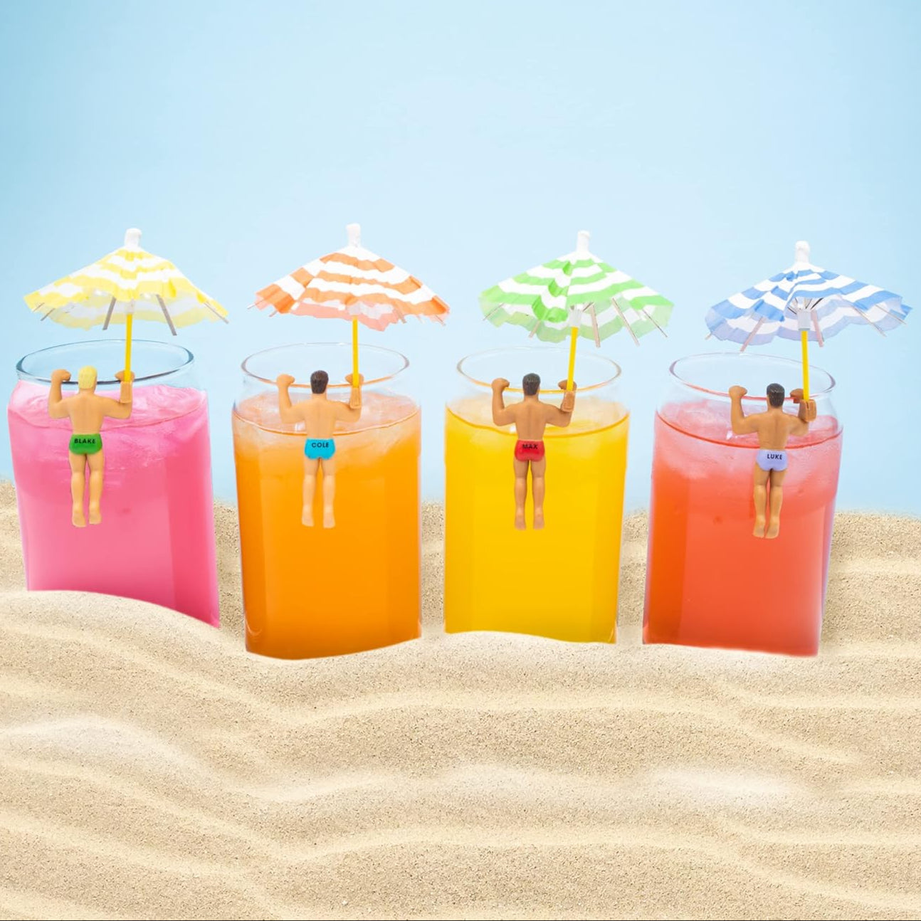 These fin 4 cocktail markers do more than just distinguish which cocktail is yours, they also shield your drink from the sun and add a whole lot of class! Includes 4 styles with working little umbrellas.
